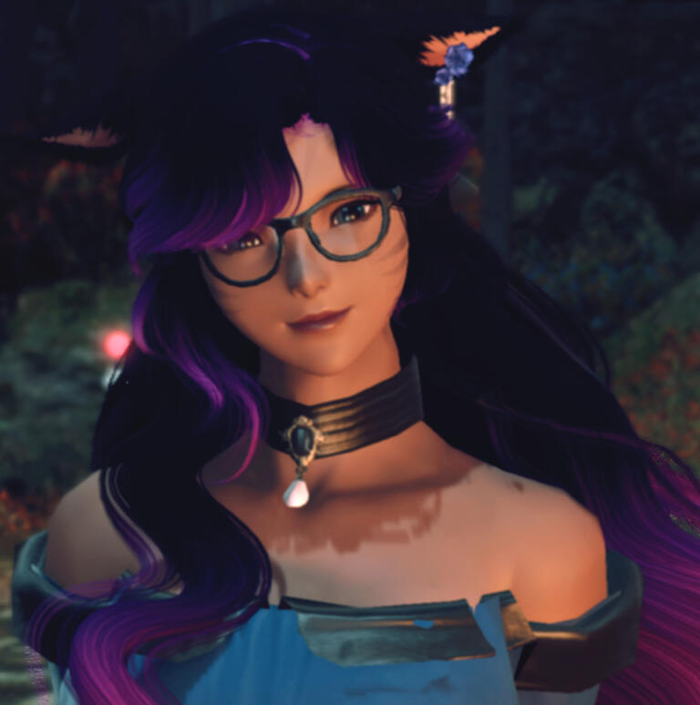 Timeline: Garlemald occupation of Doma, ARR-Shadowbringers:Born to a clan that had moved from Yanxia to The Shroud when the Garleans invaded Doma, Karumi lived with her clan as all Keepers did. She grew up knowing little to nothing of what it was like in her homeland.However, she always wondered about the world outside the forest. Despite how frail Karumi was the curiosity for the outside world grew. The world that her mother saw, she wished to see it for herself. Her mother, on the other hand was against the idea. Growing up, Karumi had no desire to hunt, preferring to spend her days idle and carefree. Despite being the chieftain's daughter, she had no such desire to inherit the position, causing friction with her mother.One night after an argument with her mother, Karumi had run off in a fit of anger. Awhile later, Karumi felt a surge of panic and headed for home, noting how the moon had turned an eerie red color. Upon returning home, she found it beseiged by Voidsent. Frantic and terrified, she fought her best to fight off the remaining creatures. Just when she thought she was done for, her mother sacrificed herself to save Karumi. With her dying breath she reconciled with her daughter bidding her to, "leave the forest, find your place in the world." As the remaining voidsent encroached around them a white light engulfed the pair of them and she was rendered unconscious.Karumi woke the next morning, dazed but alive. She glanced at her hands, realizing her mother had not only given the last of her life to destroy the remaining voidsent, but had transferred some of her magic to her, all over her body patterns of light appeared. Grabbing a tattered robe, she surveyed what was left of her home, finding a silver hairpin and some supplies. As she packed to leave she felt...something, or heard something. A whisper of something, the pond near her home rippled and seemed to speak to her, confused and wanting a fresh start and to mark her first steps of her journey and guided by the whispers of the forest, Karumi traveled to Gridania, wherein she had discovered that she was a Hearer. Though she struggled to fit into the Gridanian's way of living, slowly she acclimated to their ways. Despite this, she still faces some harship and is still viewed as an outsider by some.5 years passed since what came to be known as the Calamity and now Karumi is a quiet, helpful, member of the Conjurer's guild. Taking on many a request. But her curiosity for the outside world still lingers.Due to her quiet nature, she took up a job in a library's cafe. Hoping to come out of her shell and meet others, she works earnestly, always keeping a calm demeanor.Endwalker: